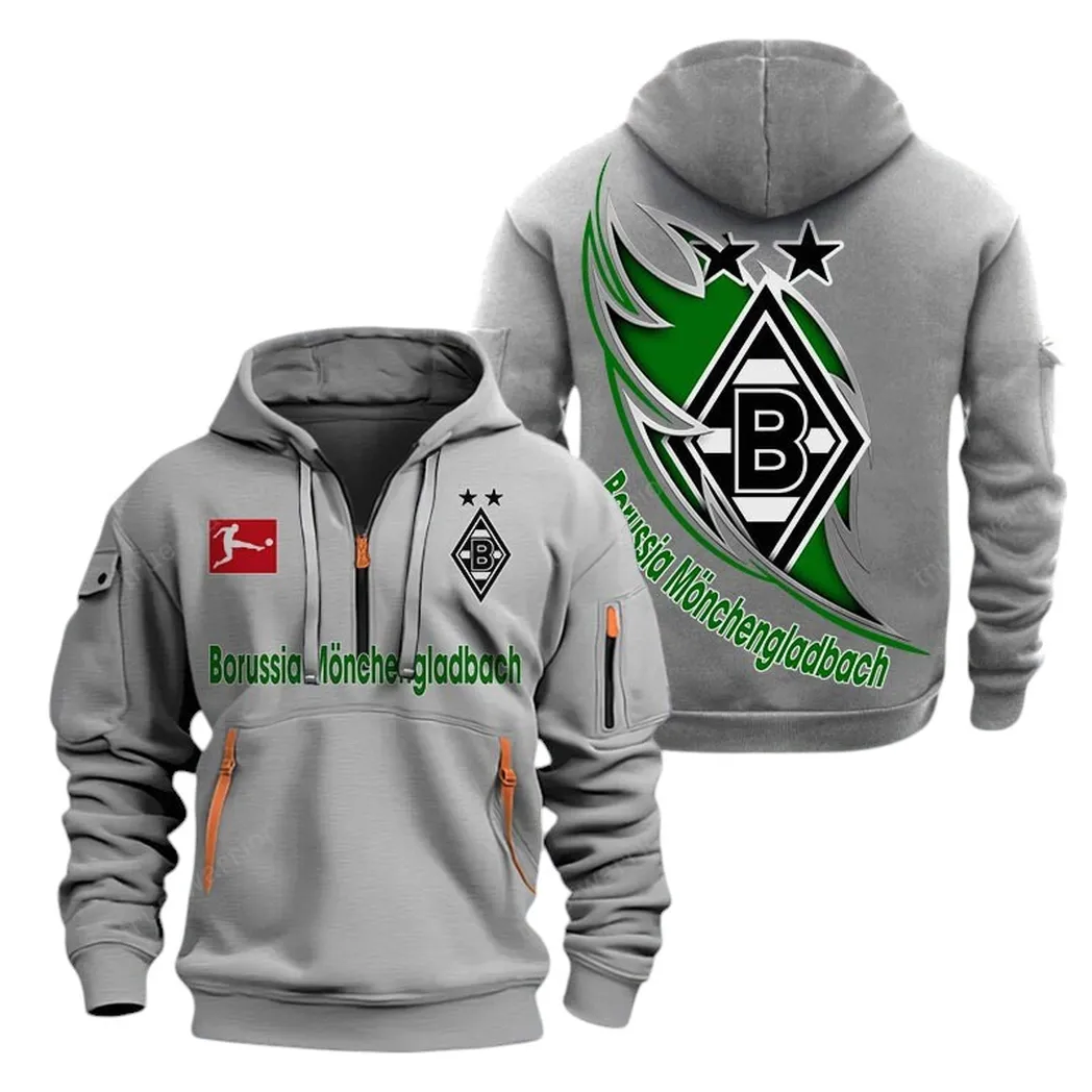 Schwarz-Weißer Club Kapuzenpullover mit halbem Reißverschluss, Hoodie Für Fußballfans BDE300 – Grau