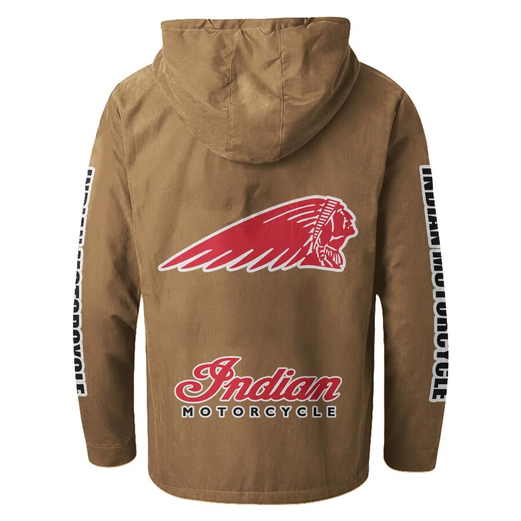 American-Style Motorbike Flannel Hoodie, Warm Street Flannel HVN1328IM – Camel