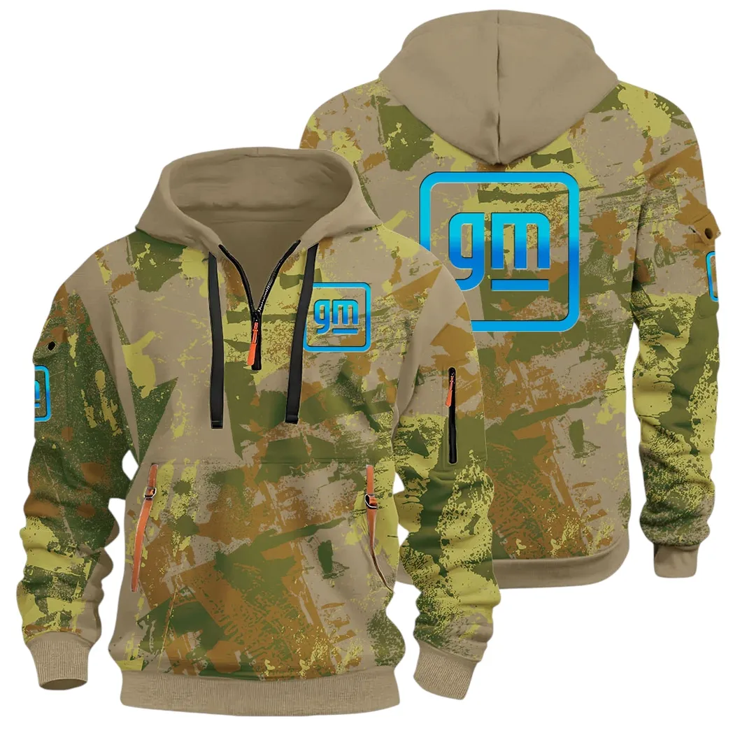 Automotive Brand Hoodie Half Zip 3D Print, Lightweight & Comfortable Streetwear Hoodie CAR514 – Khaki