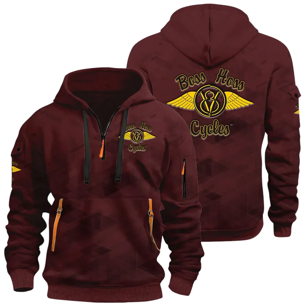 Big Engine Bike Hoodie Half Zip 3D Print, Streetwear Casual Look Outfit CAR514 – Dark Red