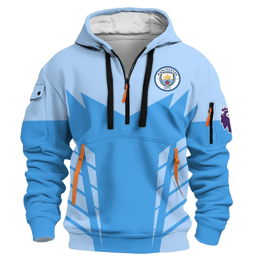 Blue Shirt Side Hoodie Half Zip 3D, Modern Sport Hoodie HVN1320MC