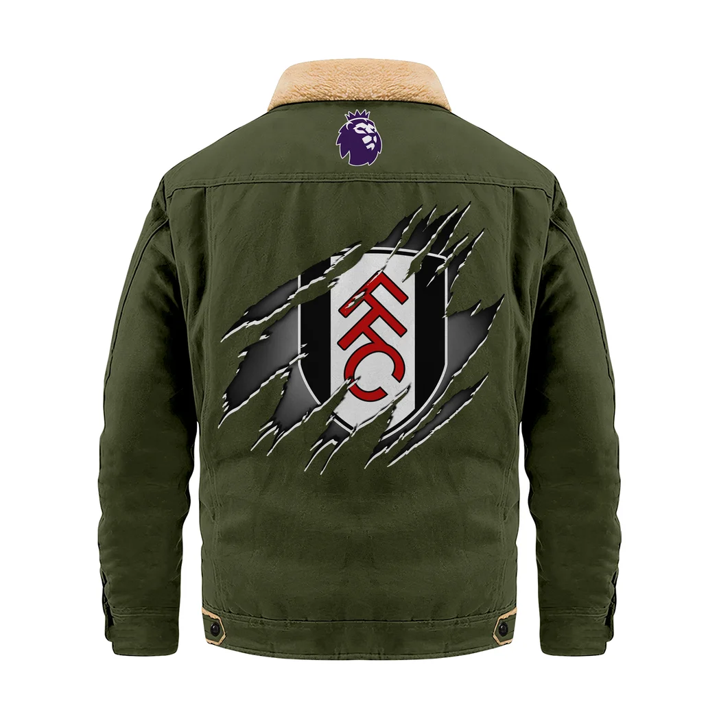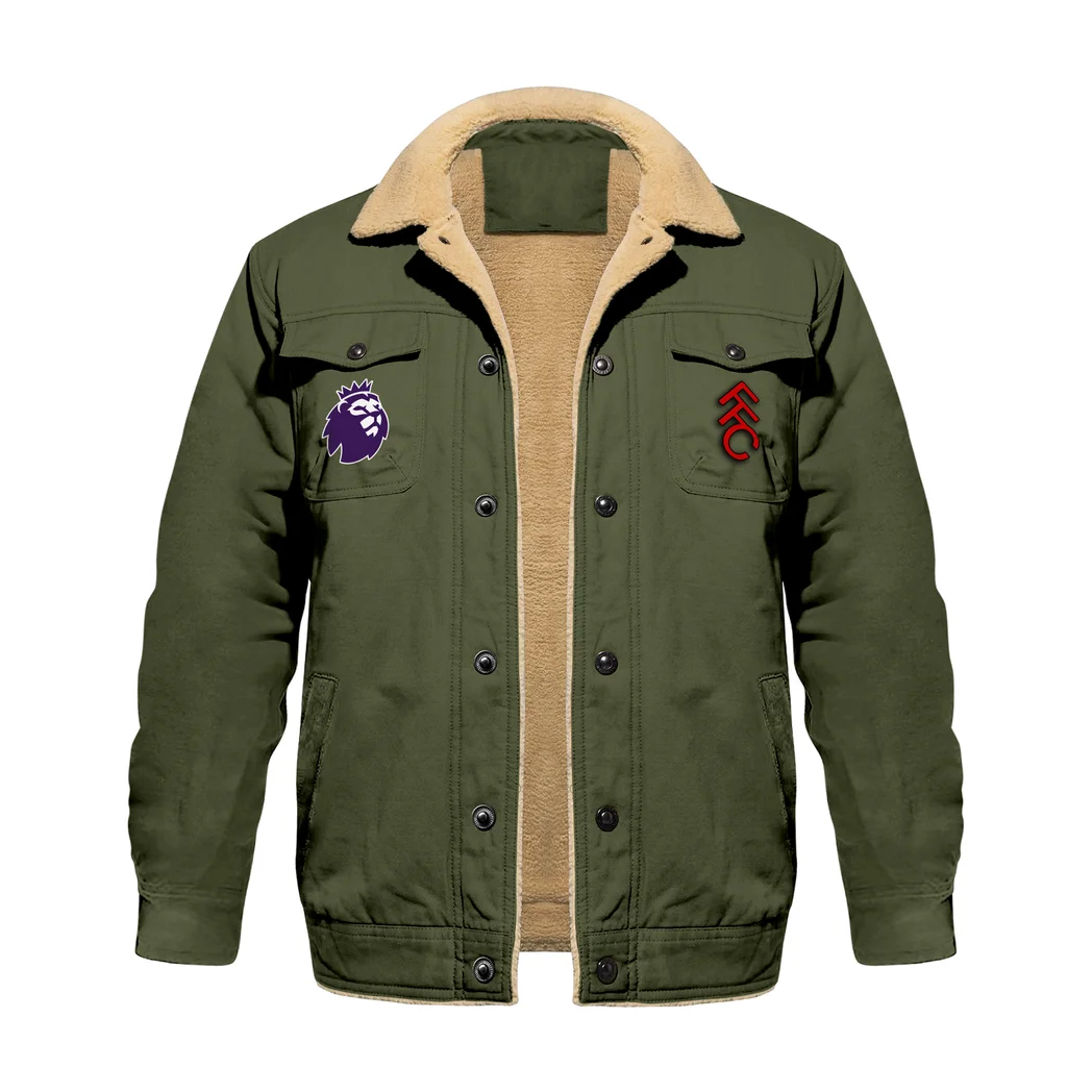 City Blue Supporters Jacket Fur Collar Fleece, Fur Collar Fan Jacket HVN1390FU – Military Green
