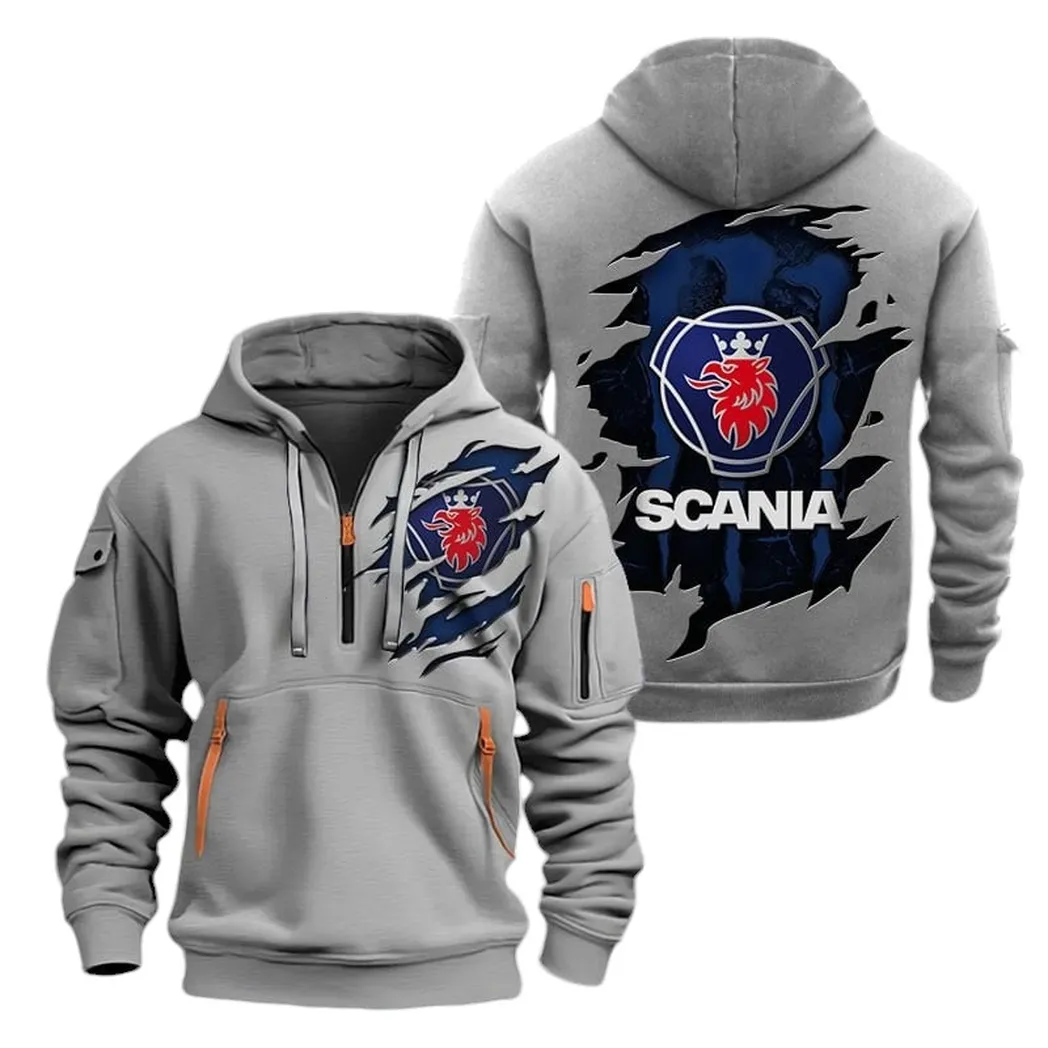 Commercial Lorry Hoodie Half Zipper, Sporty Fan Half-Zip Hoodie CAR021 -Gray
