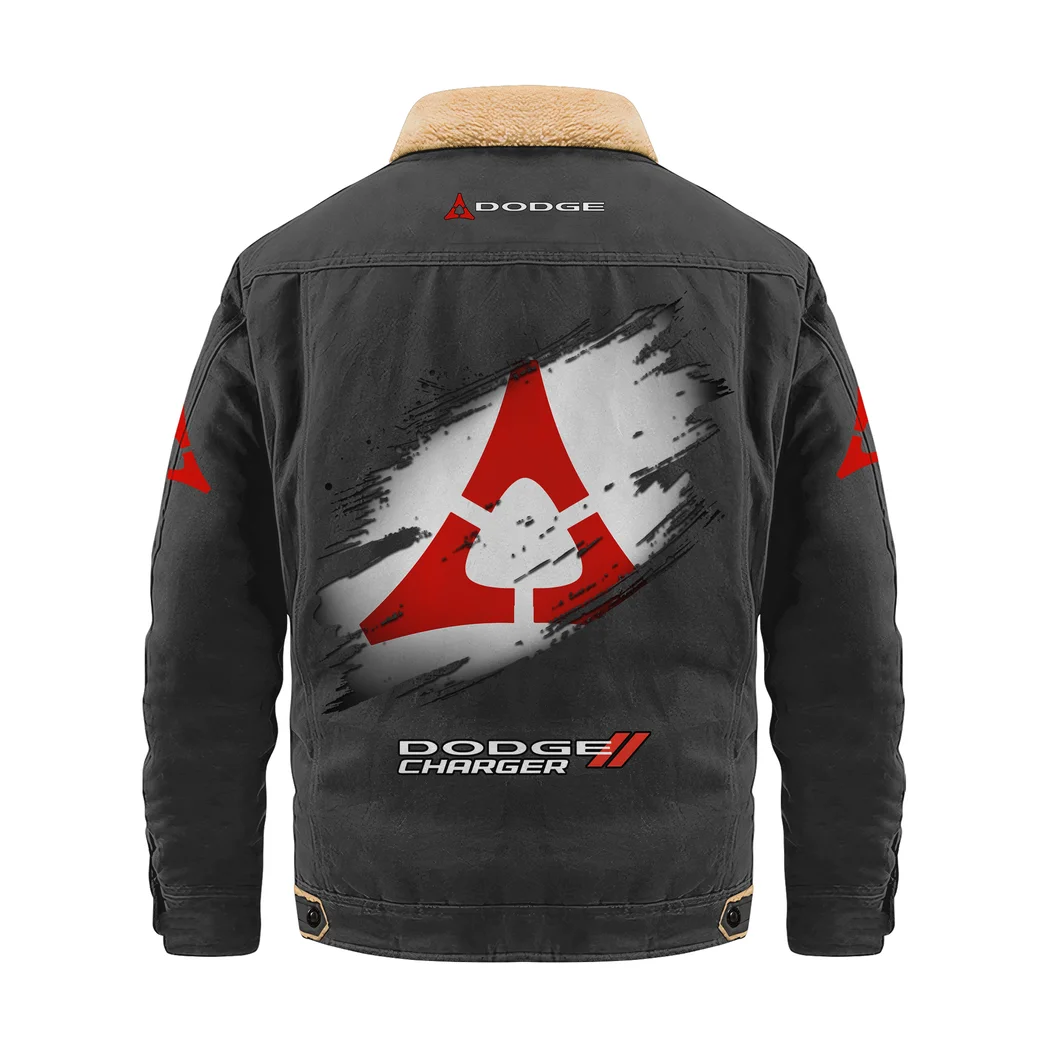 Drag-Ready Car Jacket Fur Collar Fleece, Motorcycle Fan Warm Jacket HVN1397DC – Dark Gray