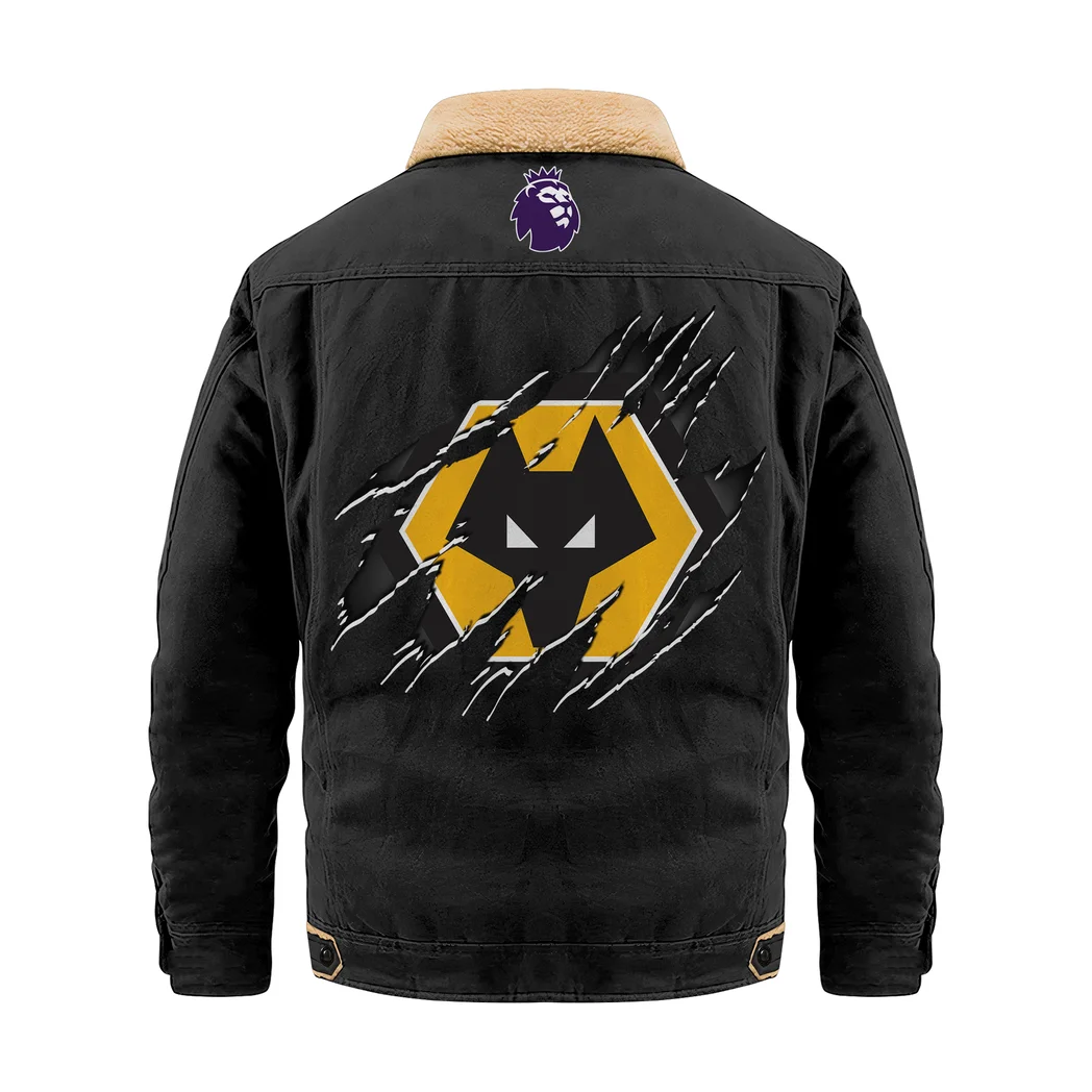 English Wolf Side Jacket Fur Collar Fleece, Streetwear Team Spirit HVN1390WW – Black