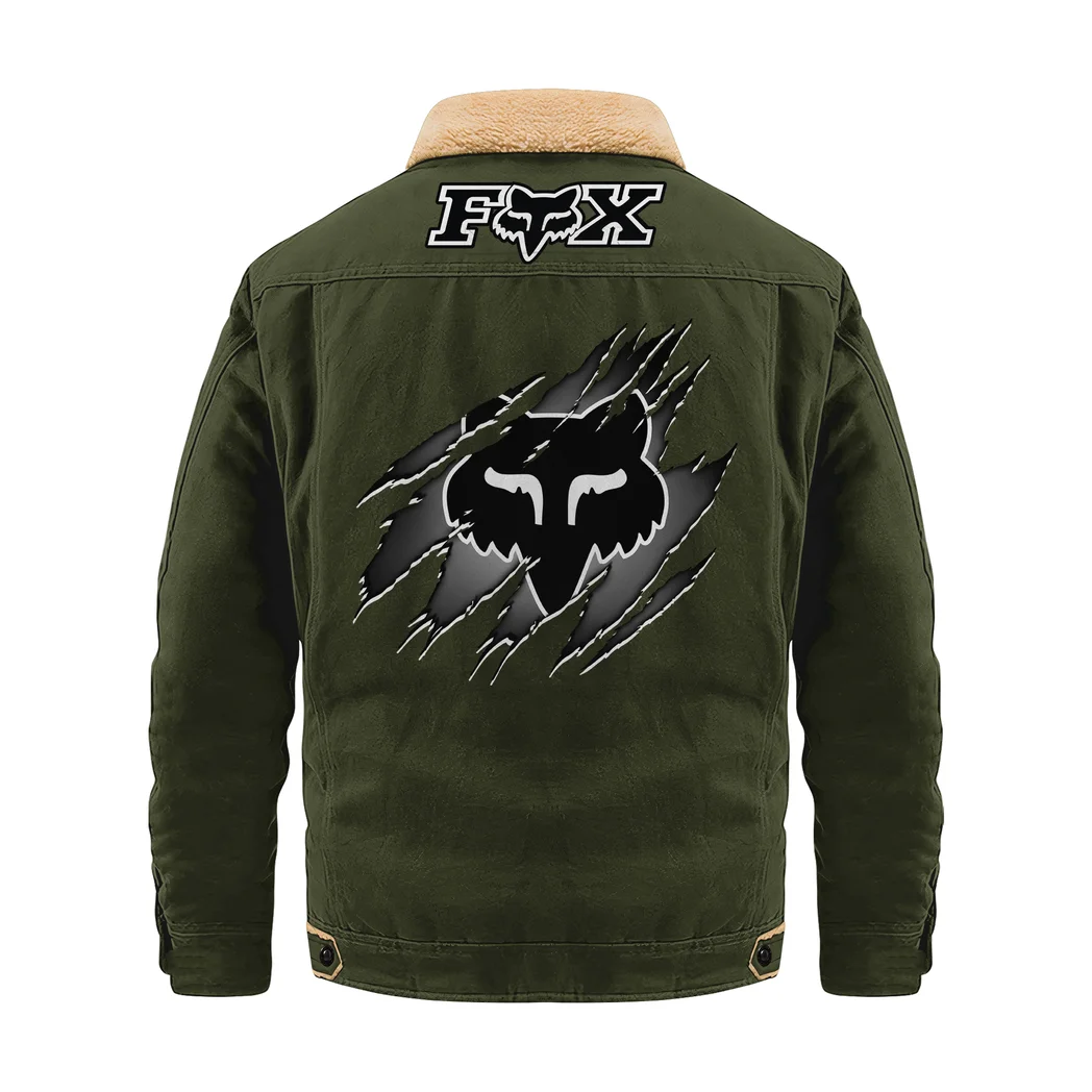 Extreme Sports Gear Jacket Fur Collar Fleece, Street Style Driver Jacket HVN1383FR – Military Green