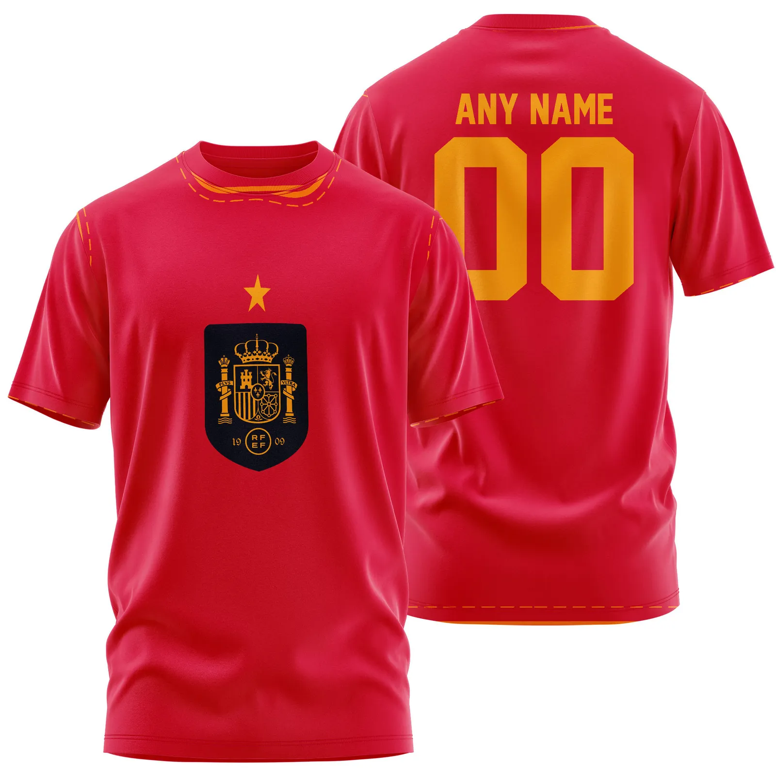 Breathable Performance Fabric: Crafted from a lightweight polyester and spandex blend, this T-shirt offers excellent breathability and stretch, keeping you cool and comfortable whether you’re celebrating goals or on the move.