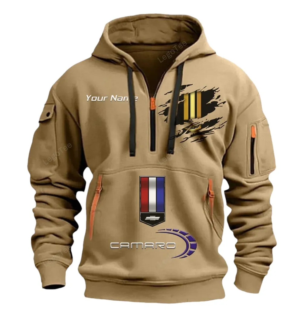 Iconic Muscle Ride Hoodie Half Zipper, Supporter Spirit Hoodie CAR113 – Khaki
