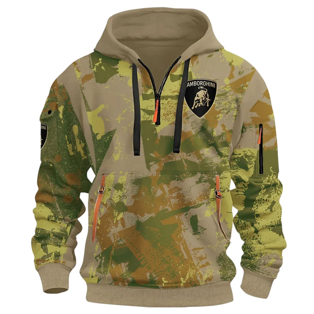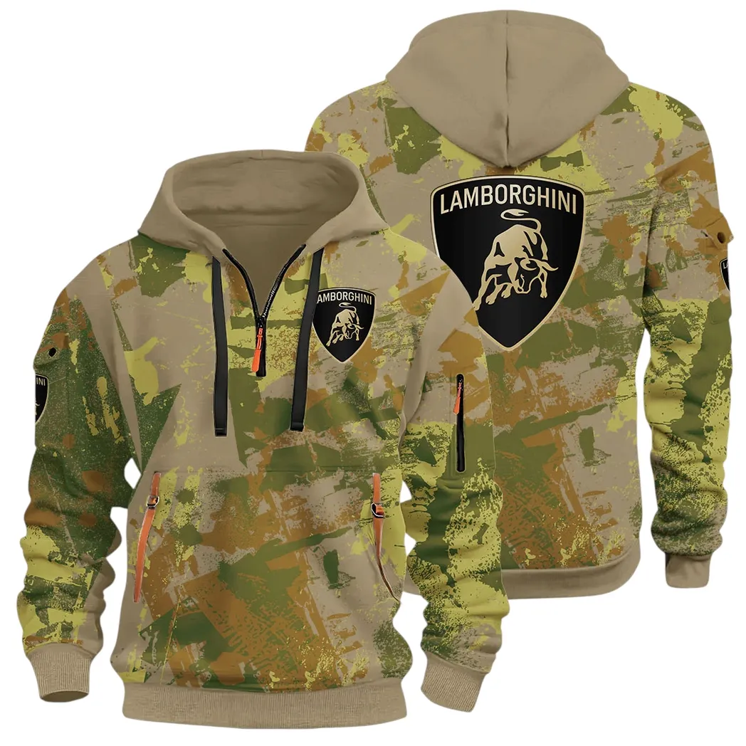 Iconic Supercar Ride Hoodie Half Zip 3D Print, Sporty & Casual Everyday Wear Hoodie CAR514 – Khaki