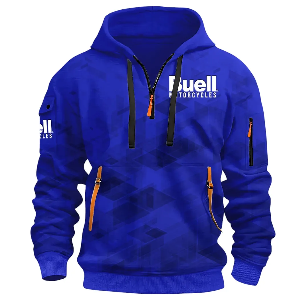 Modern Street Bike Hoodie Half Zip 3D Print, Sporty & Casual Everyday Wear Hoodie CAR514 – Blue