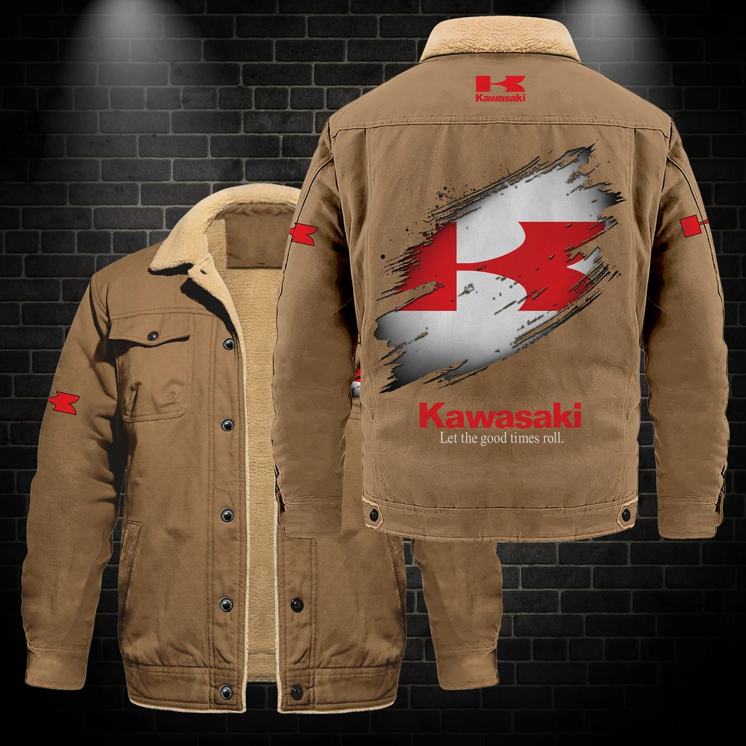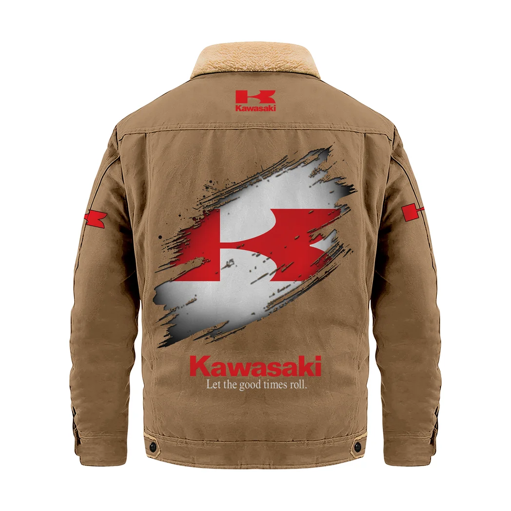 Motorcycle Jacket Fur Collar Fleece, Casual Automotive Fur Fleece HVN1397KA – Khaki