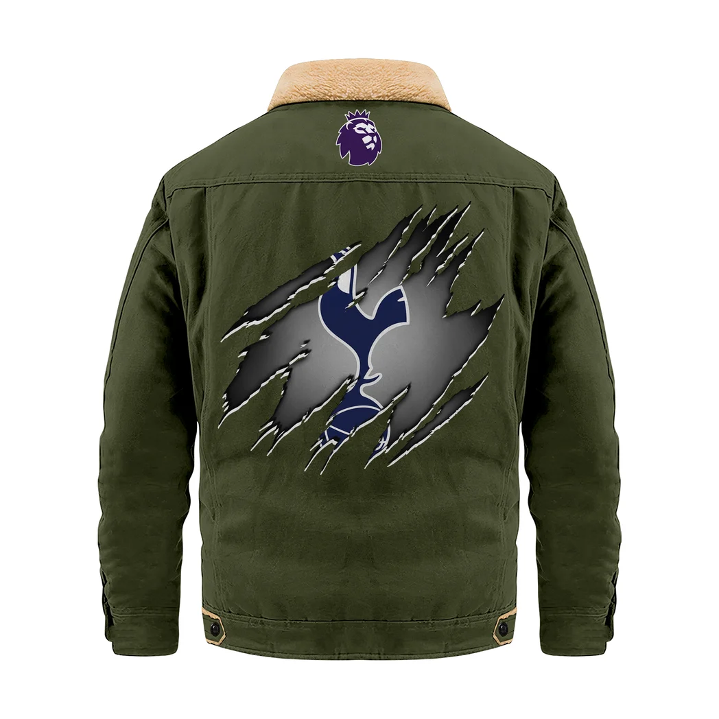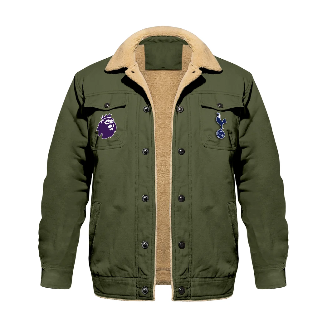 North London Spurs Jacket Fur Collar Fleece, Game Day Warmth HVN1390TH – Military Green