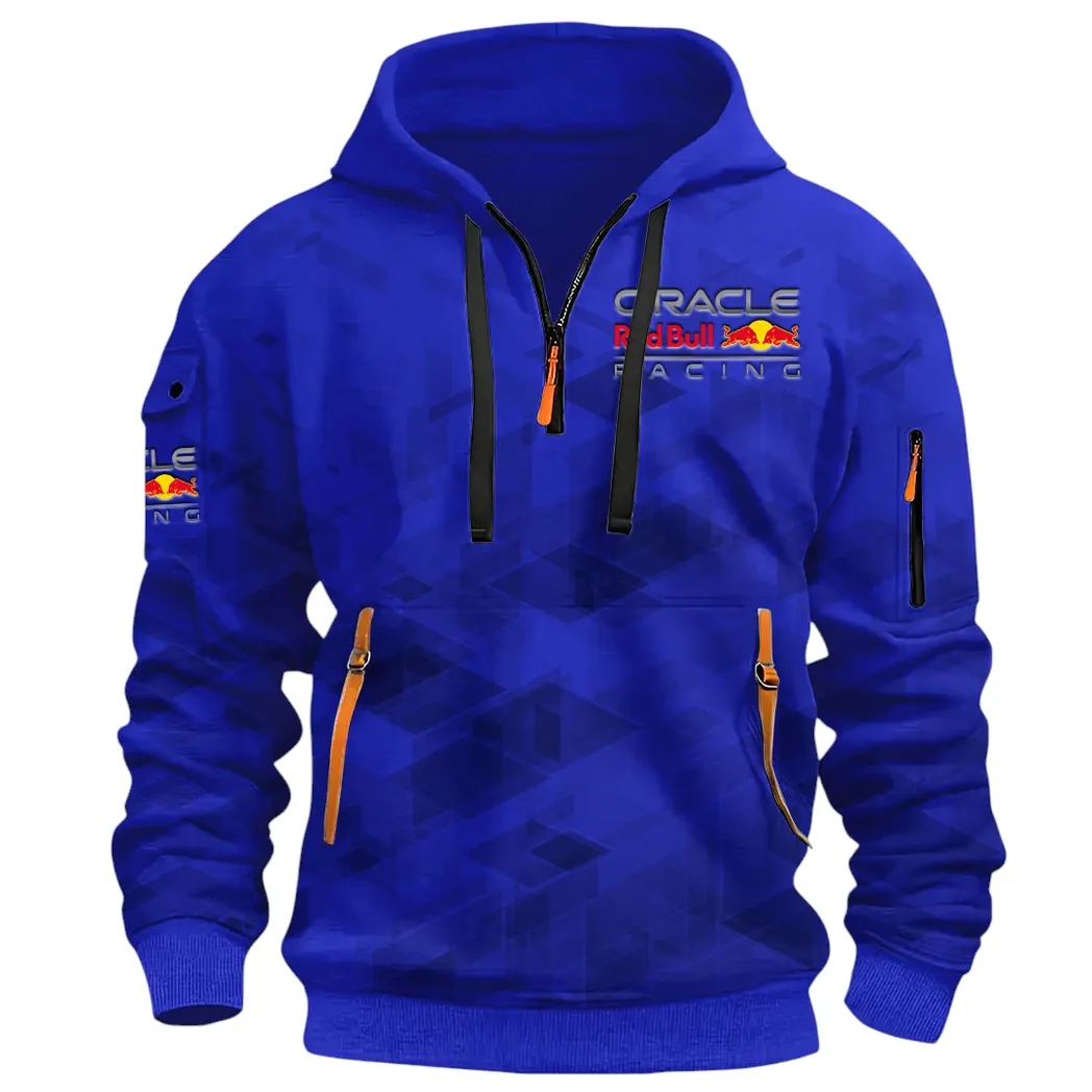 Racing Vibe Hoodie Half Zip 3D Print, Rugged Casual Hoodie CAR514 – Blue