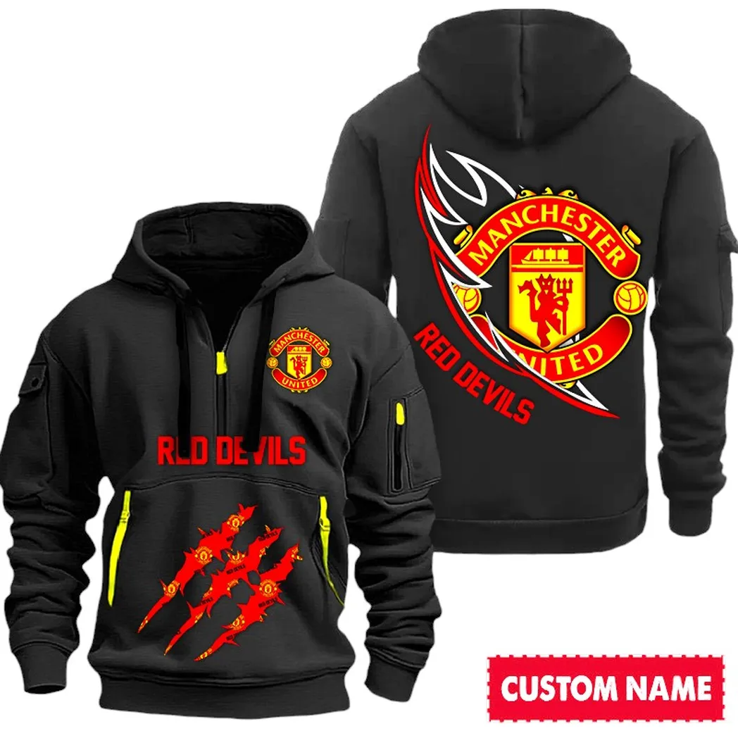 Red Devil Spirit Hoodie Half Zipper, Lifestyle Fan Half-Zip Hoodie SPO012 – Gray