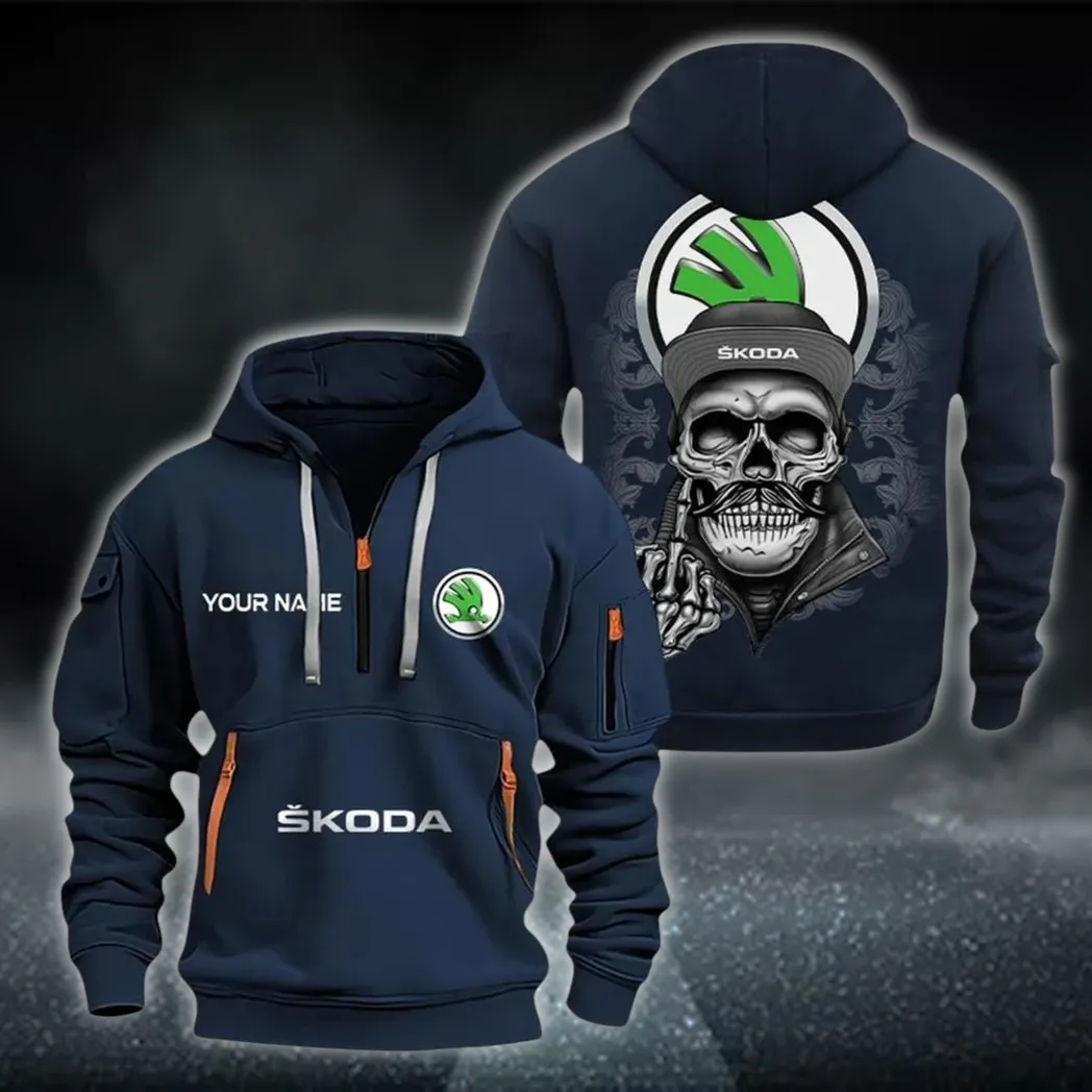Unique Three-Wheeler Hoodie Half Zipper, All-Season Fan Half-Zip Hoodie CAR166 – Navy