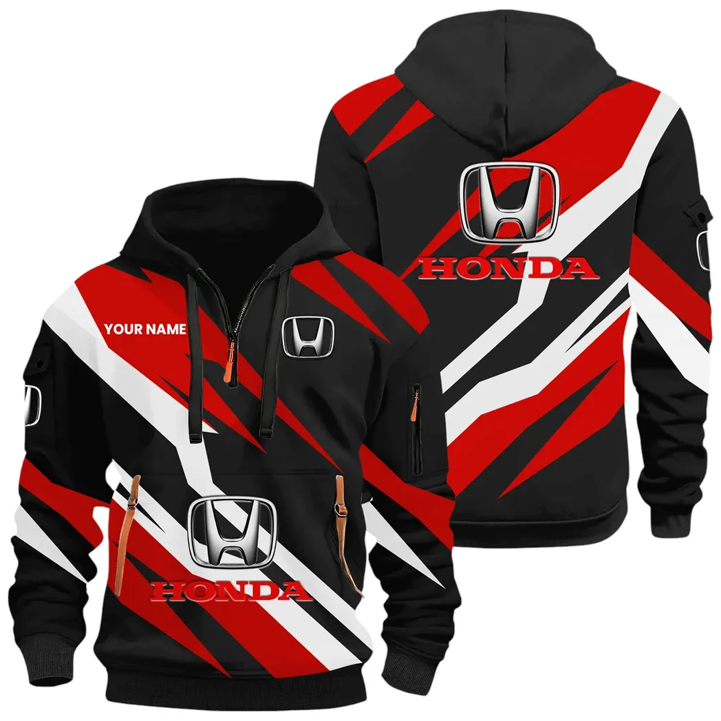 - Performance Half-Zip Hoodie: Adjustable quarter-zip neckline with an insulated hood for customizable comfort. Perfect for layering on cool mornings or breezy evenings at car meets and rides.